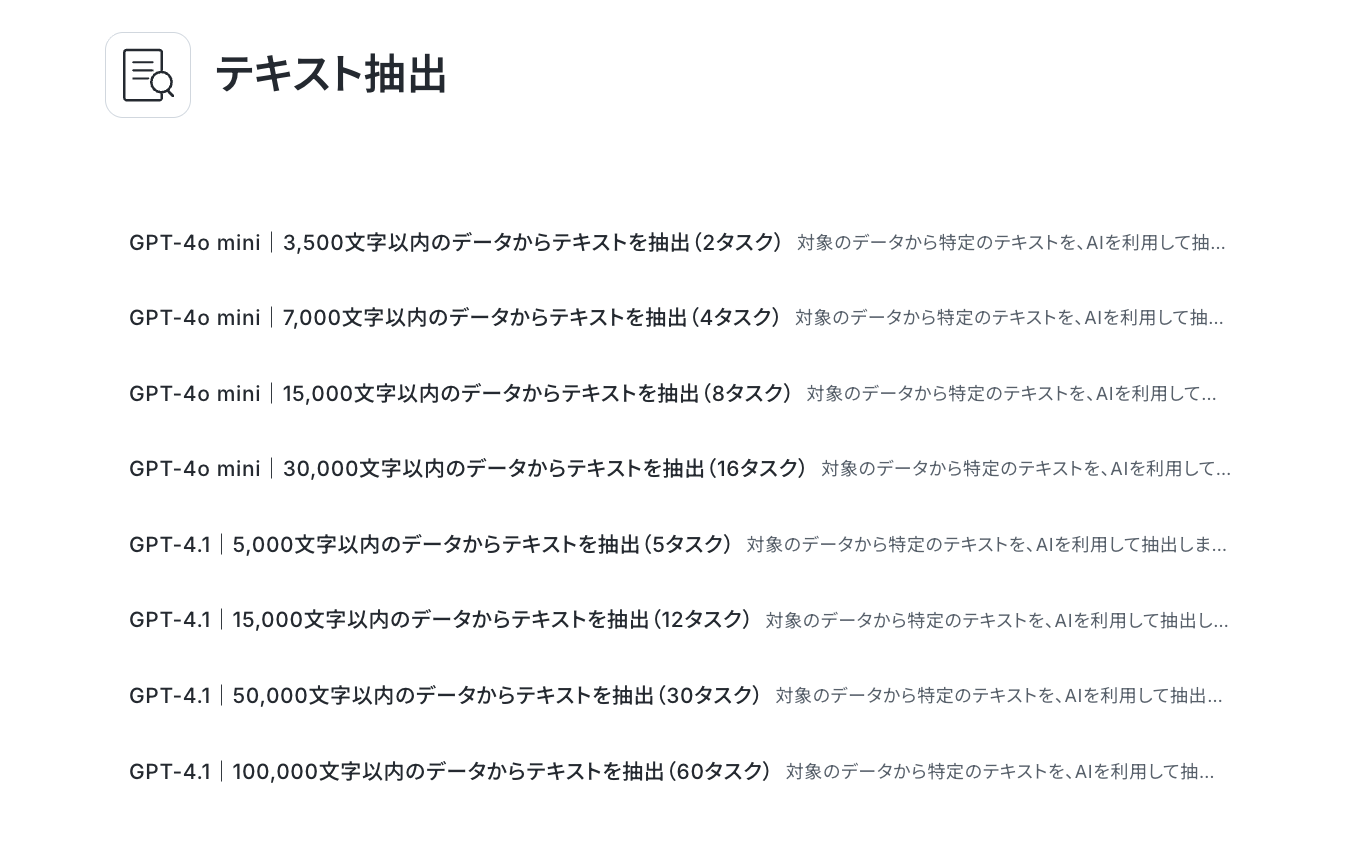 まずはテキスト抽出はAIを活用するので、AIモデルと文字数を選択します。