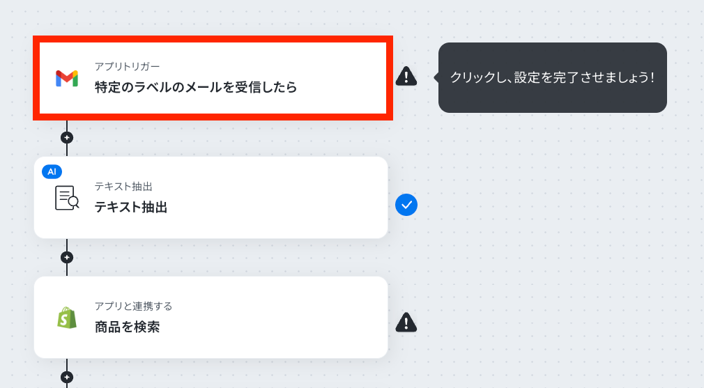 - Gmailのトリガー設定と各アクション設定
