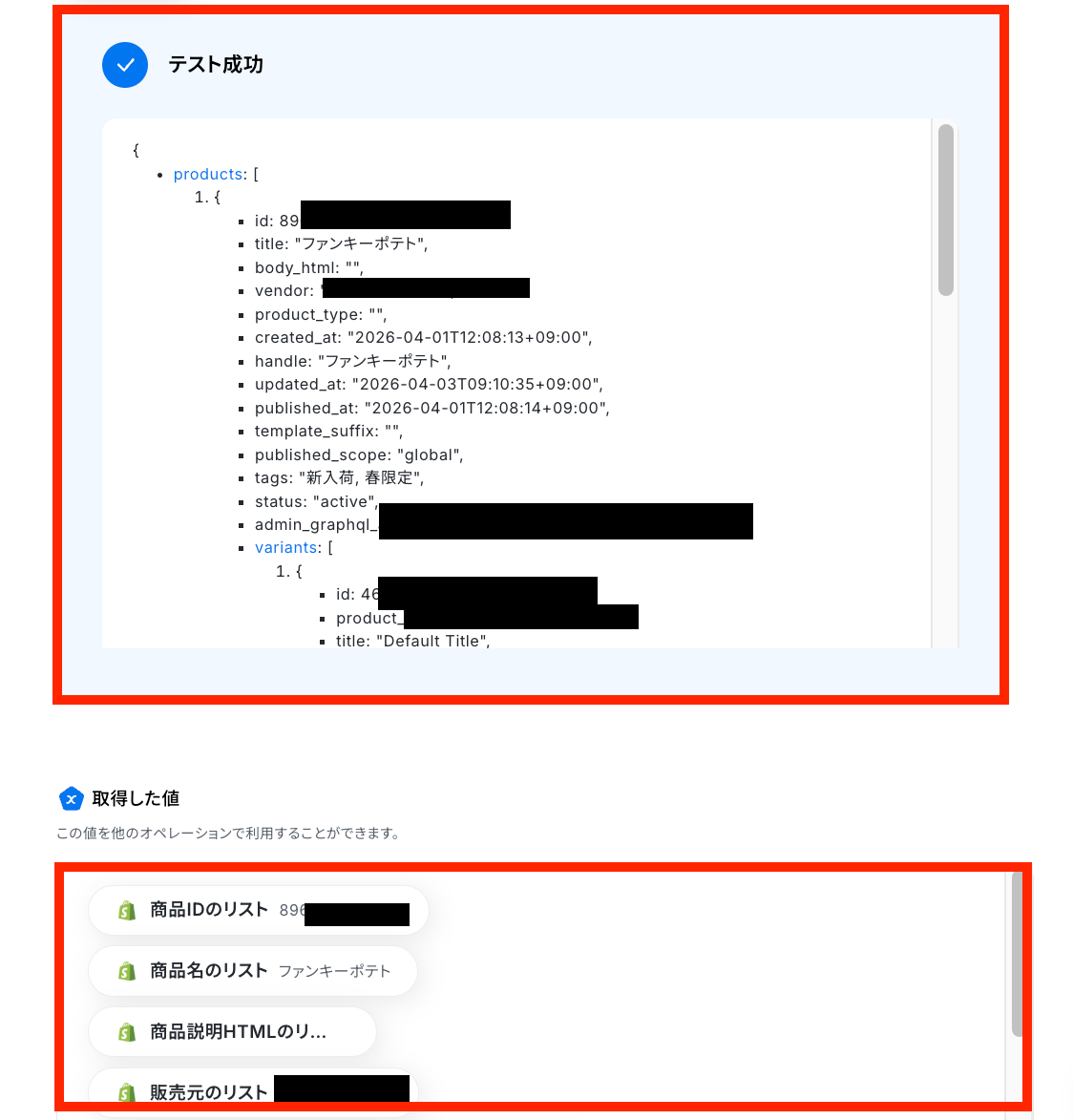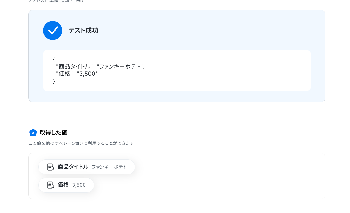 テストの結果、抽出したい項目が反映されていれば成功です!