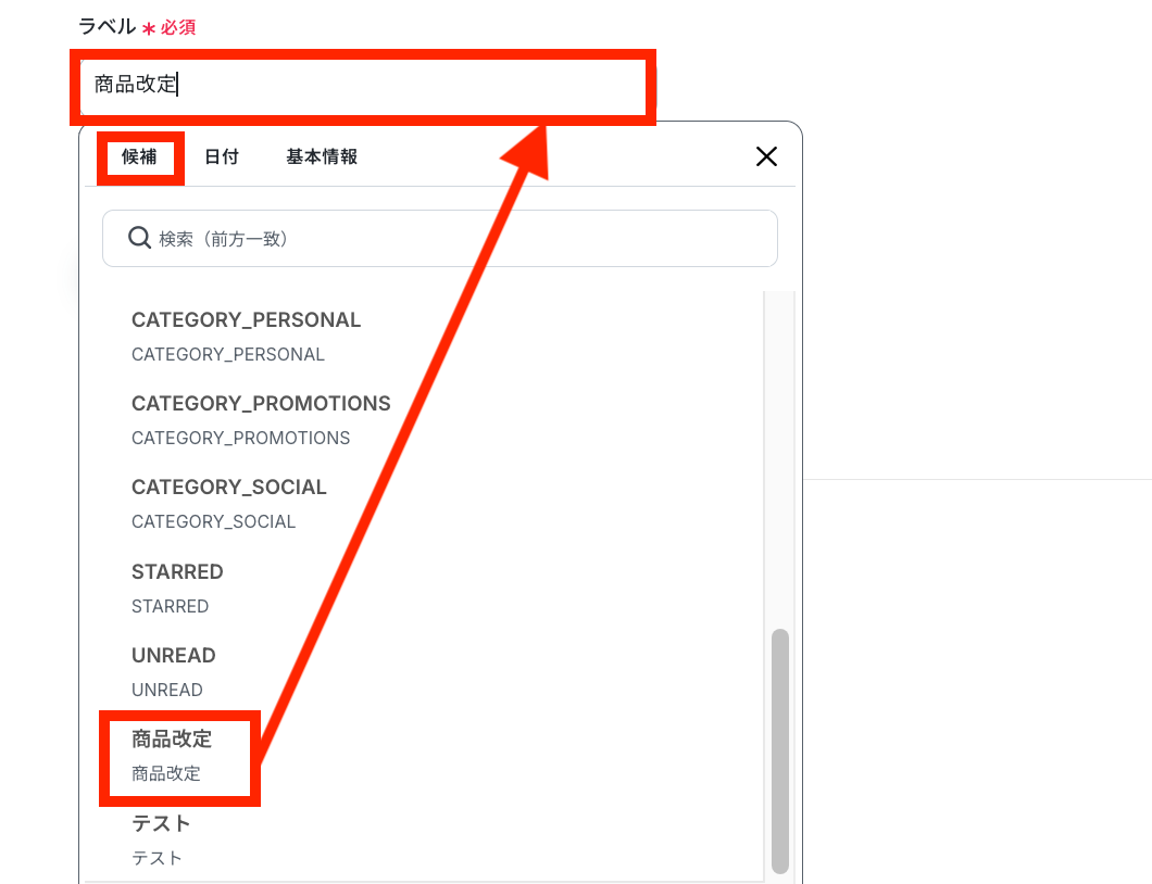 「ラベル」を設定します。
