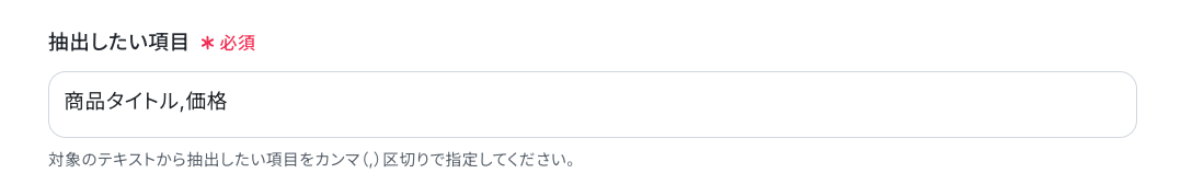 「抽出したい項目」を設定します。