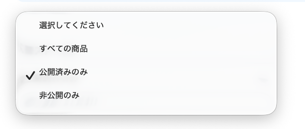 その時に「すべての商品」にすることで、非公開状態の商品も更新対象に含めることで可能になります。