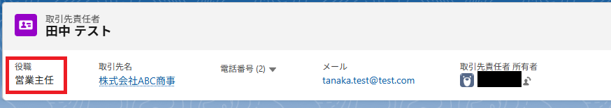 今回のテストでは役職が営業主任→営業部長に、更新されています。