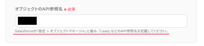 「オブジェクトのAPI参照名」も、注釈を確認し入力しましょう。