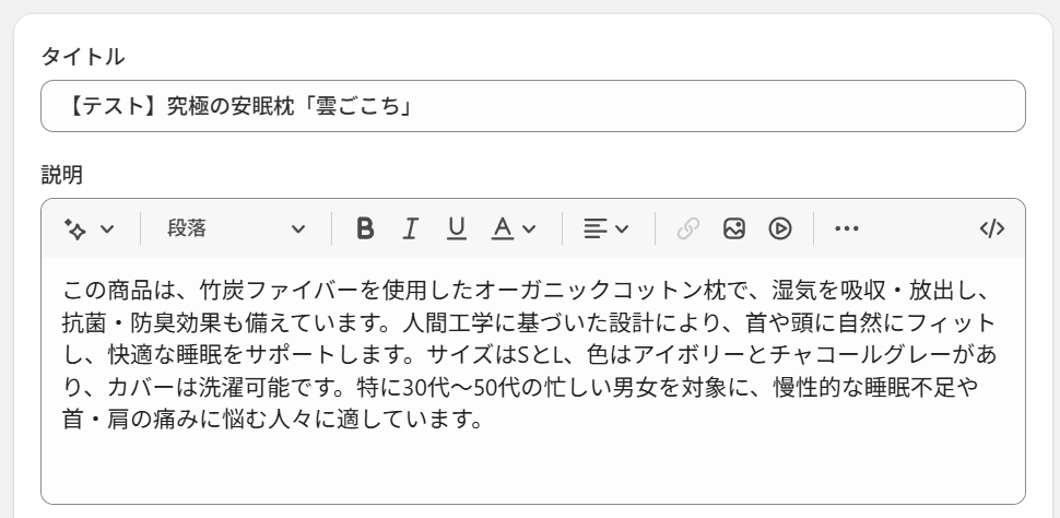 Shopifyでの商品登録時、魅力的でSEOに強い商品説明文を都度作成するのは時間のかかる作業ではないでしょうか。