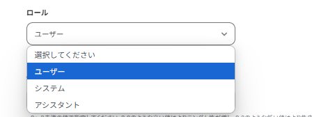 ロールはデフォルトではユーザーとなりますが、任意で選択しましょう。