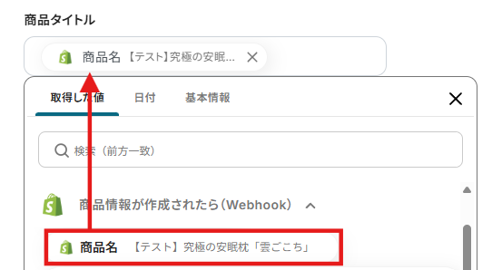 商品タイトルもShopifyの取得した値を用います。