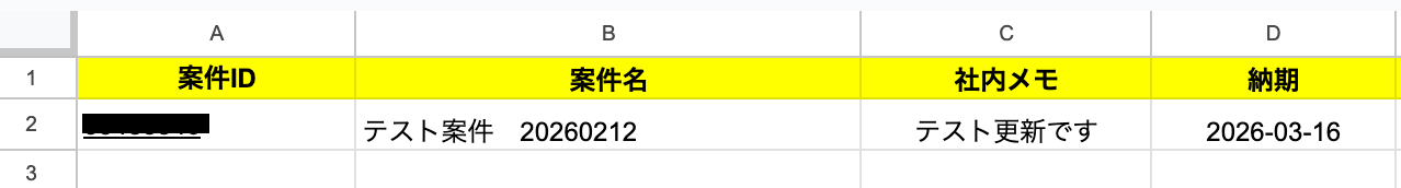 シート内には「案件ID」と「案件名」を必ず設定してください。