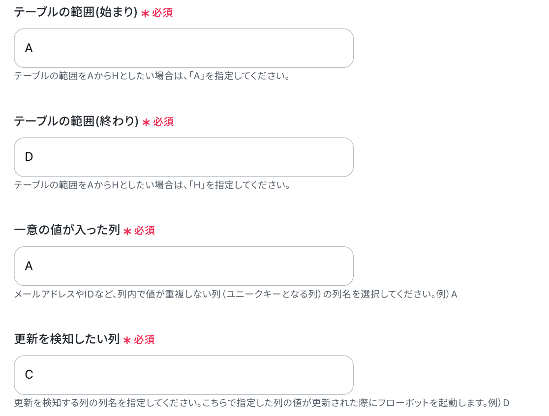 ※Google スプレッドシートをアプリトリガーとして使用する際の注意事項は「【アプリトリガー】Google スプレッドシートのトリガーにおける注意事項」を参照してください。