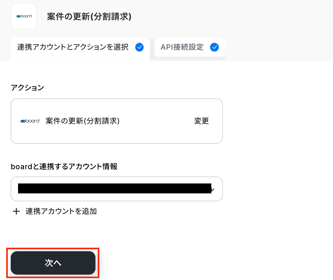 最後の設定です!ここでは、boardの分割請求の案件を更新する設定を行います。
