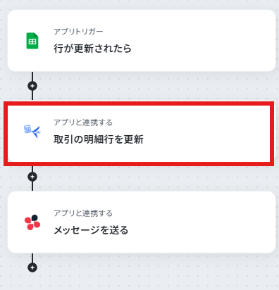※今回のフローは取引IDなどをGoogle スプレッドシートで共有している前提です。 取引IDは「取引一覧の取得」アクションなどで確認できます。