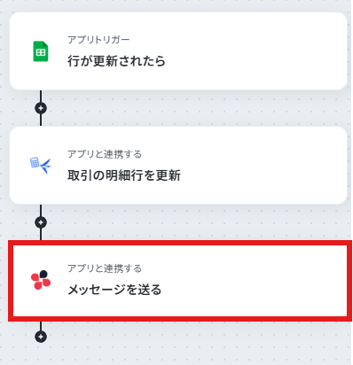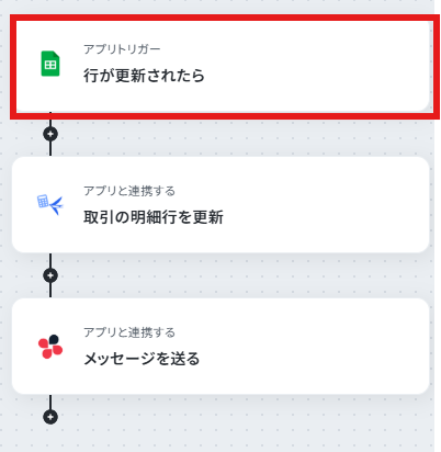 Google スプレッドシートの情報を元にfreee会計の取引明細を更新するフローを作ってみよう それではここから代表的な例として、Google スプレッドシートの行が更新されたら、freee会計で取引の明細行を自動で更新し、その内容をChatworkで通知するフローを解説していきます!