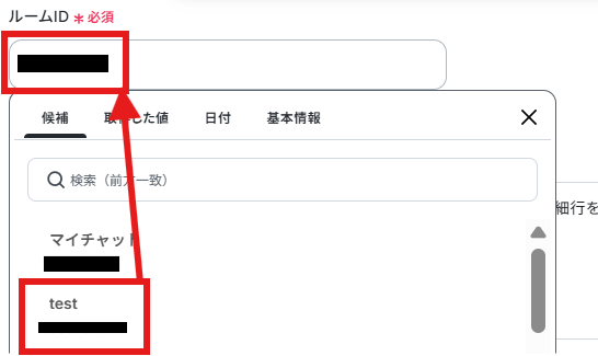 「ルームID」は通知を行いたいチャットルームを候補から設定してください。