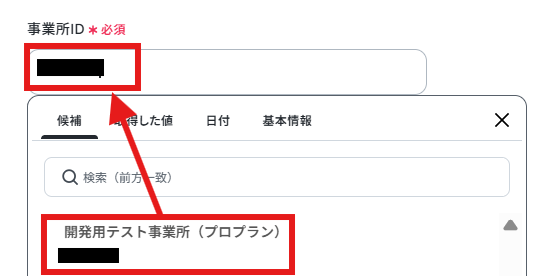 freee会計の各オペレーション(取引先の検索、未決済取引の登録)では、ご利用の環境に合わせて任意の事業所IDを設定してください。これにより、正しい事業所に取引情報が反映されます ■注意事項