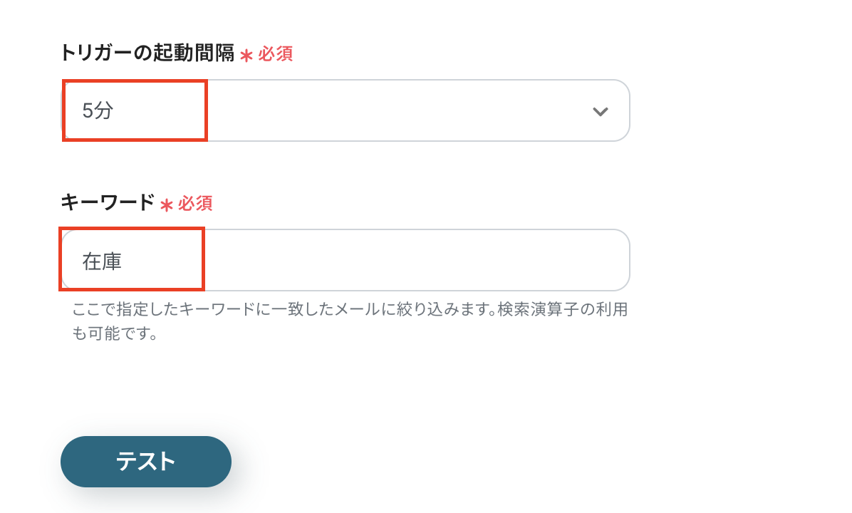 また、ここで設定したキーワードをもとに、メールを特定します。