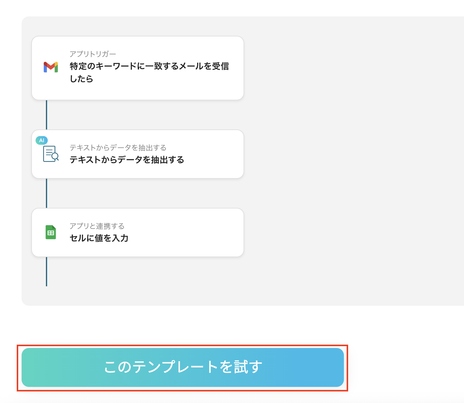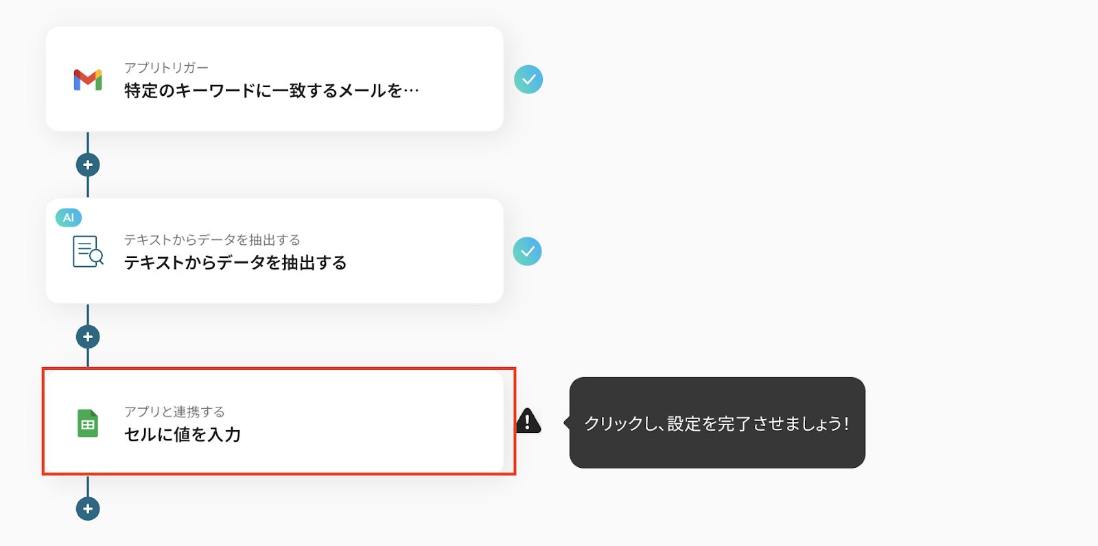 このワークフローを活用することで、Gmailで特定のキーワードを含むメールを受信するたびに、自動でGoogle スプレッドシートの指定したセルが更新されます。