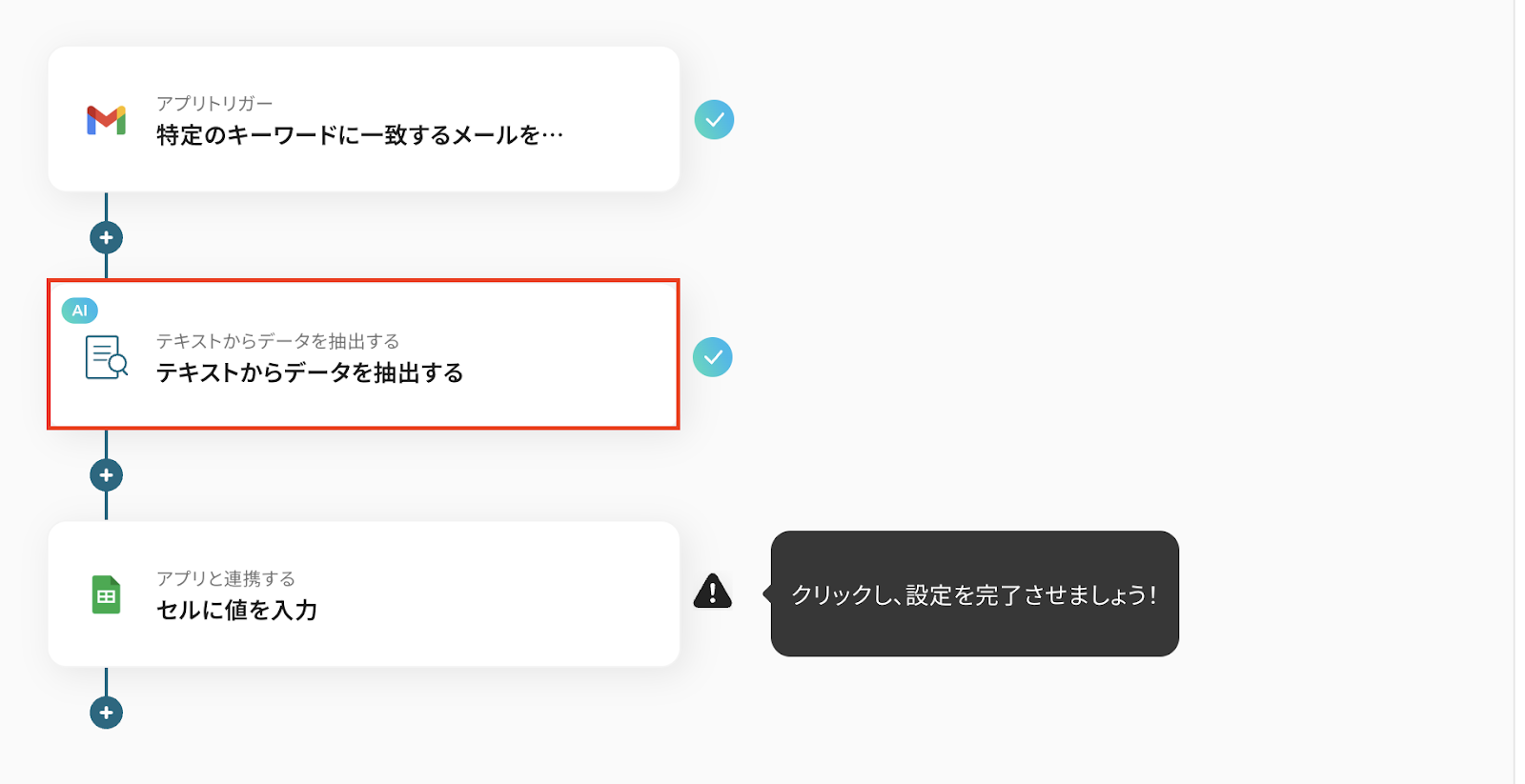 取得した値を活用せずに手入力した場合、同じ内容からテキストを抽出し続けてしまいますので、注意しましょう。