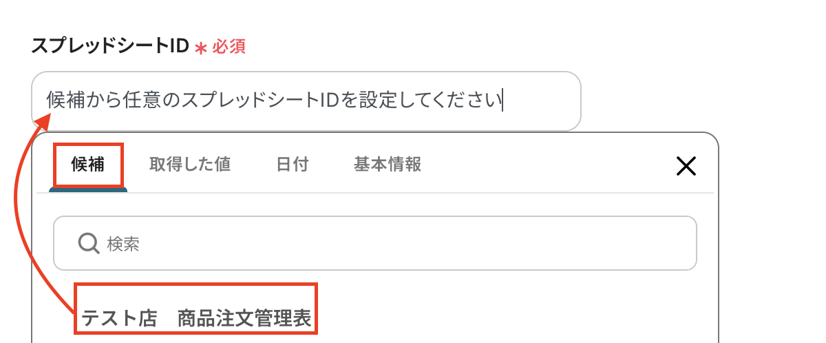 スプレッドシートIDは候補から選択してください。