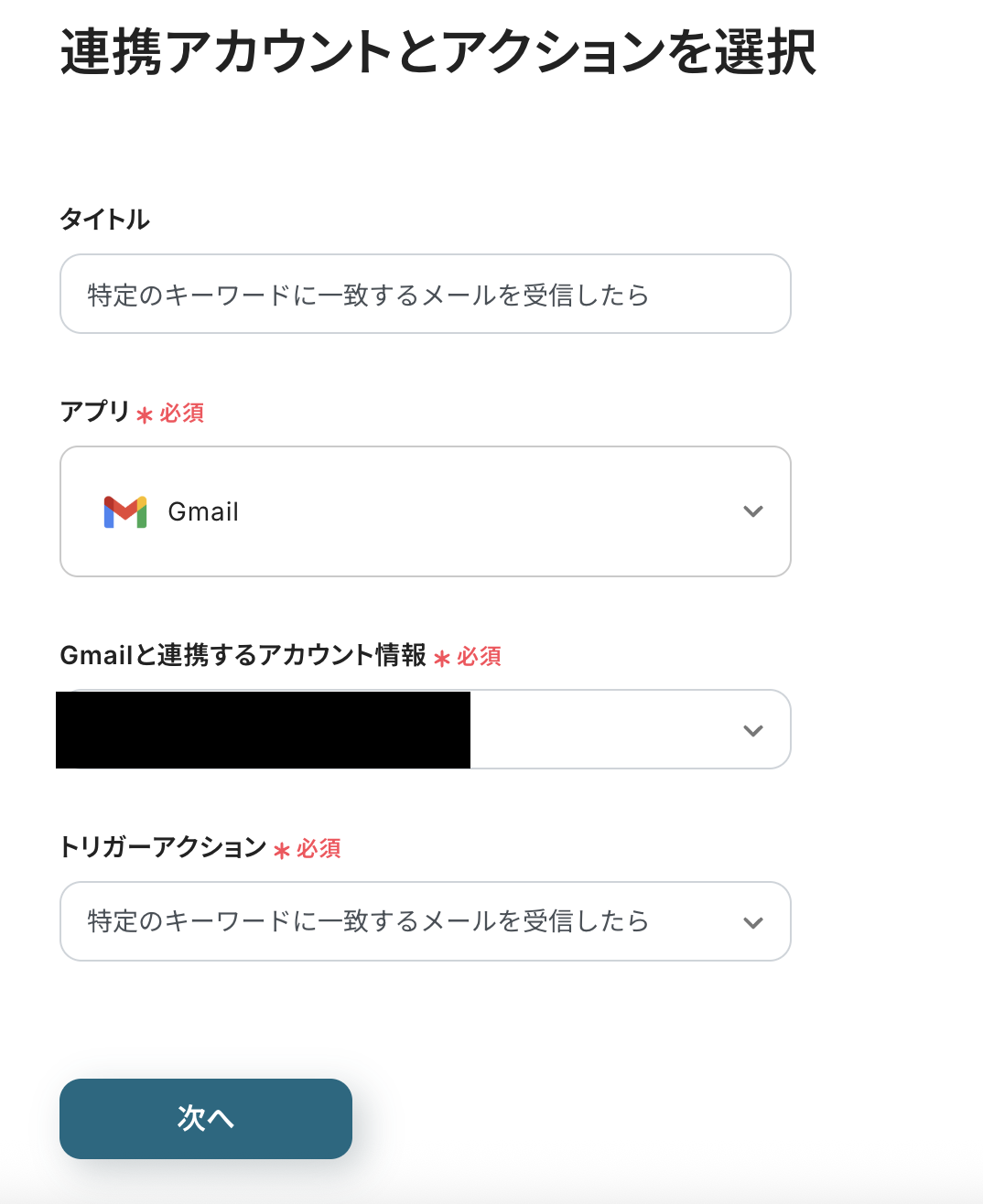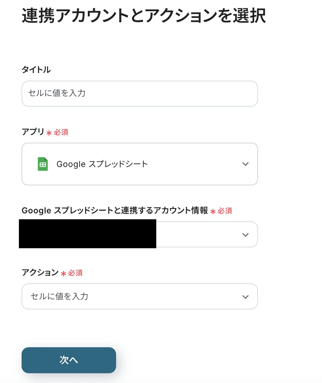 連携アカウントとアクションを選択