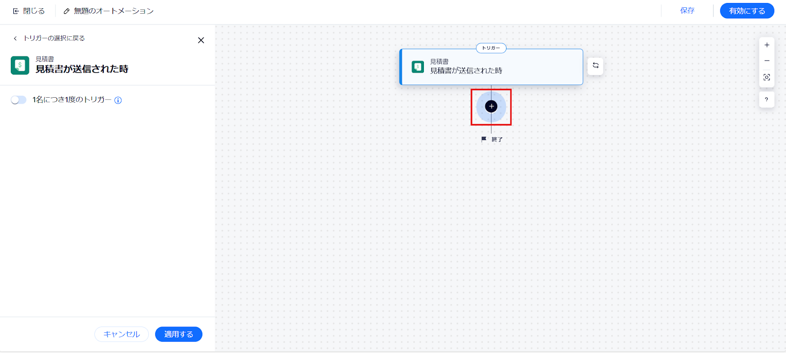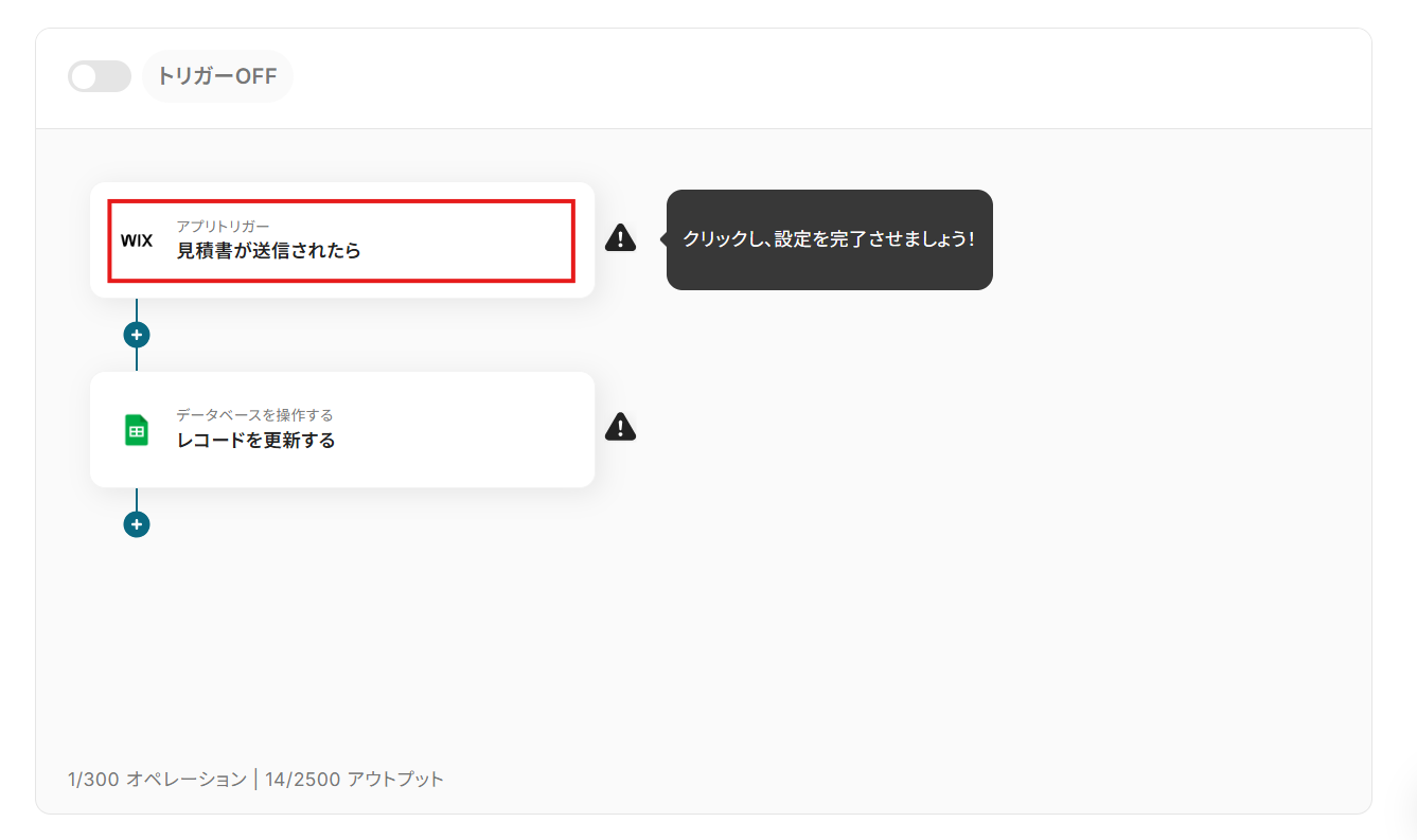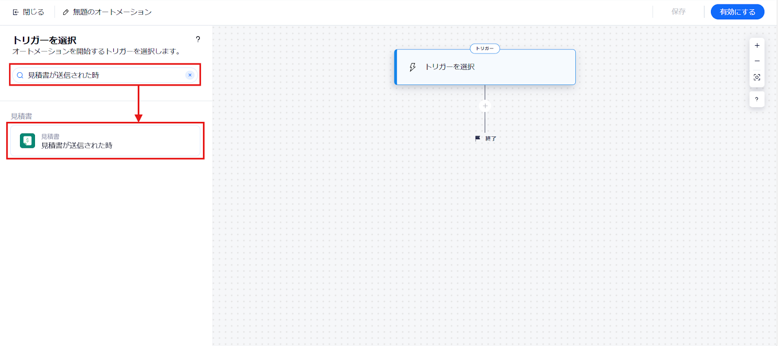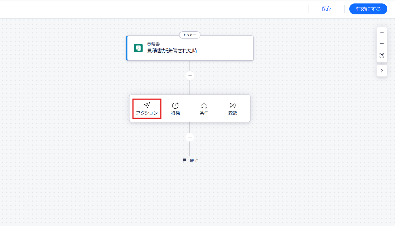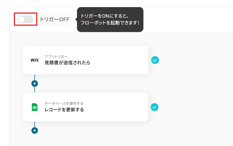 フローの画面に戻り、「見積書が送信されたら」にチェックマークがついていれば完了です。