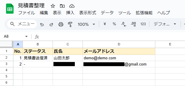 Wixを通じて見積書が送信されると、自動的にGoogle スプレッドシートの情報が更新されます。