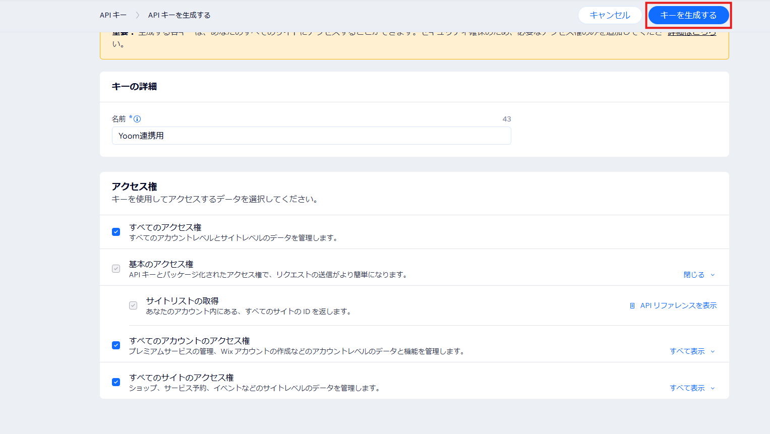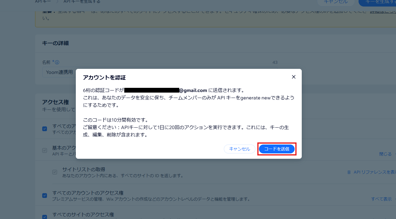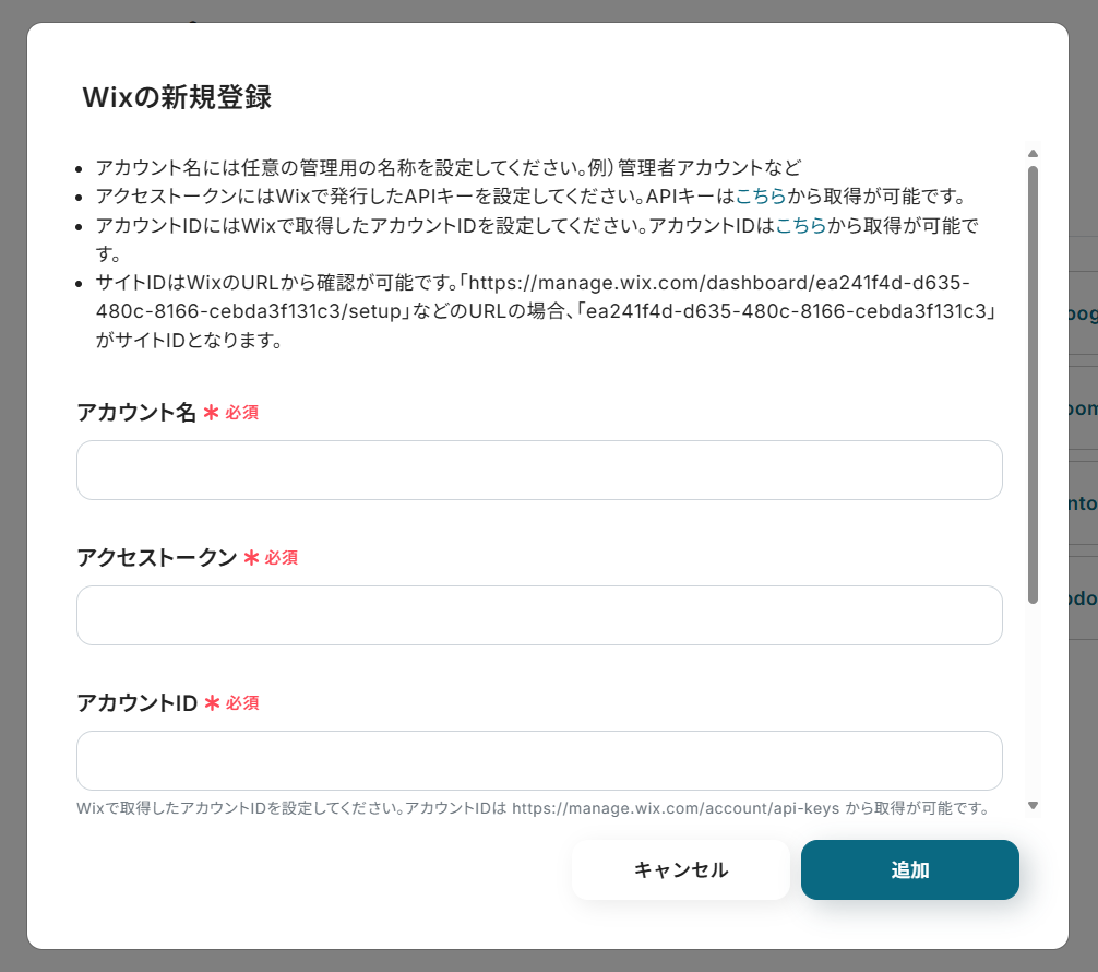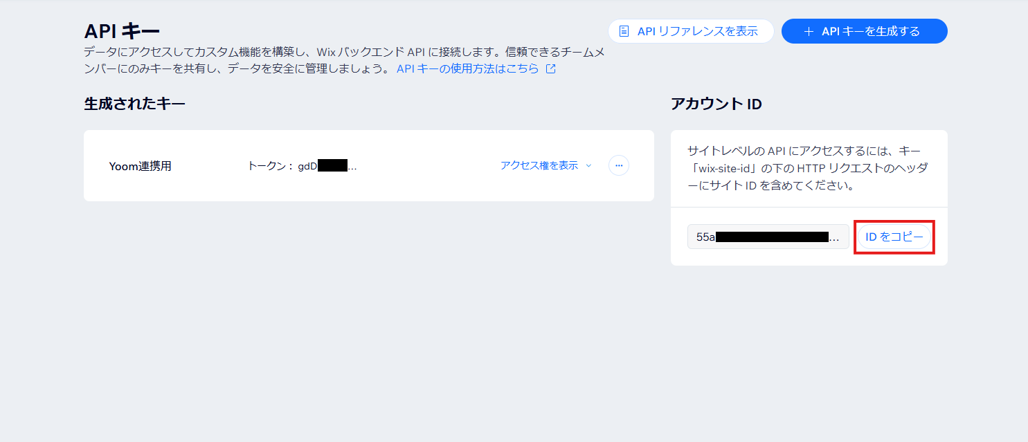 - アクセストークンとアカウントIDを取得するため、Wixにログイン。