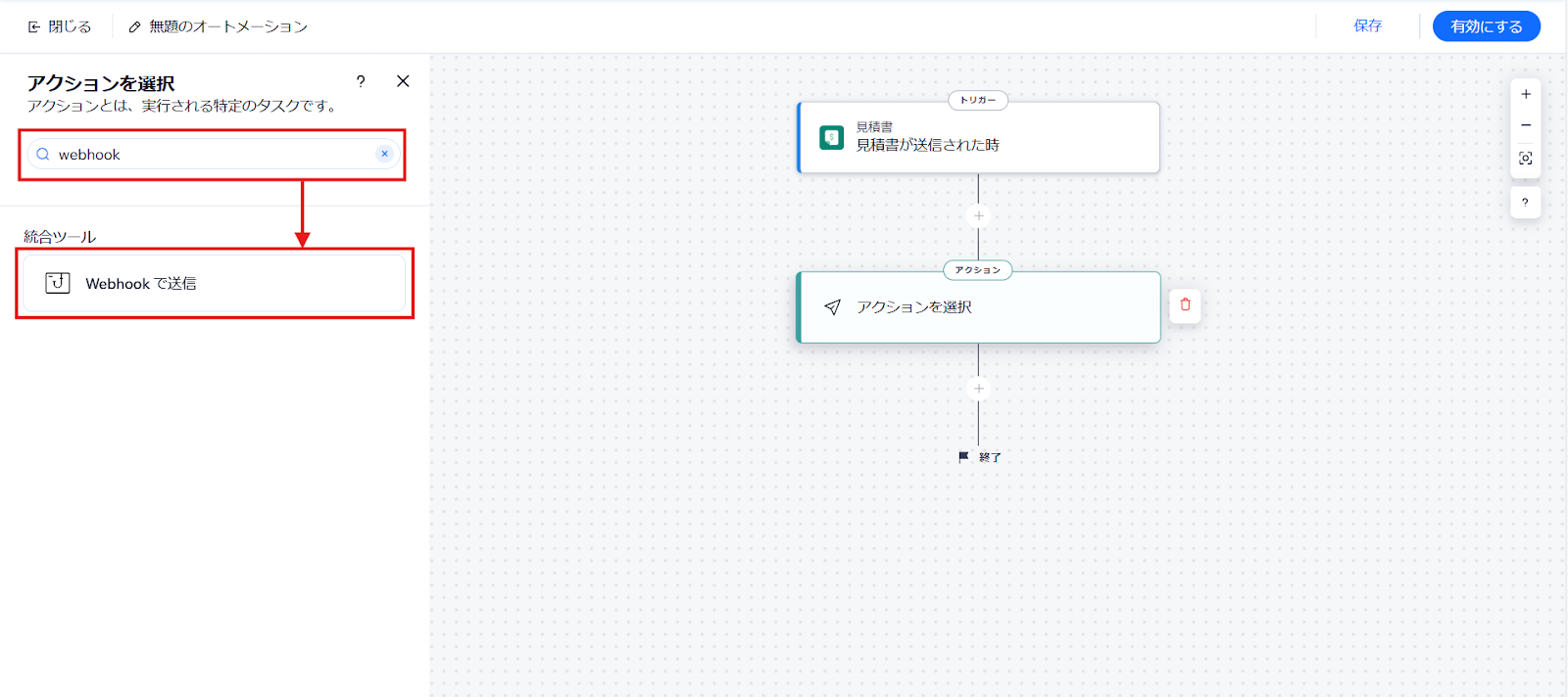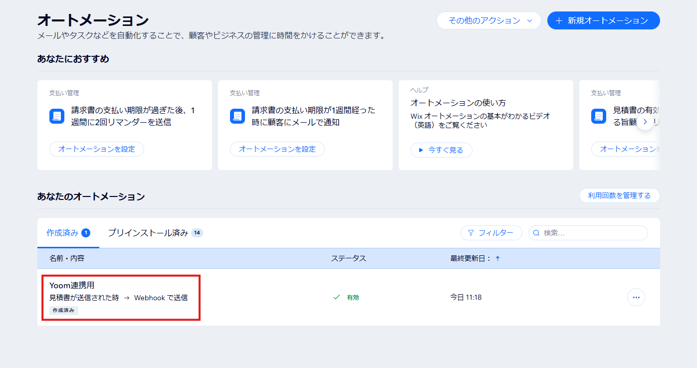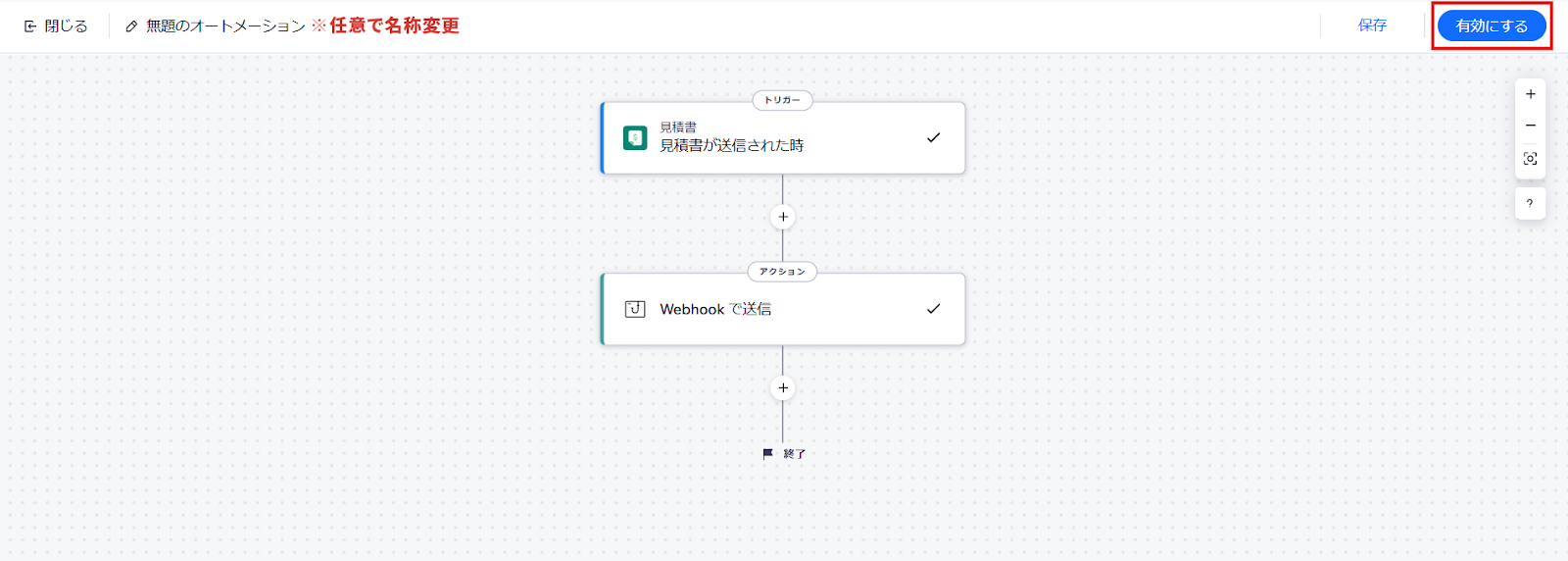 - これで「見積書が送信されたらWebhookで送信する」オートメーションが設定できました。