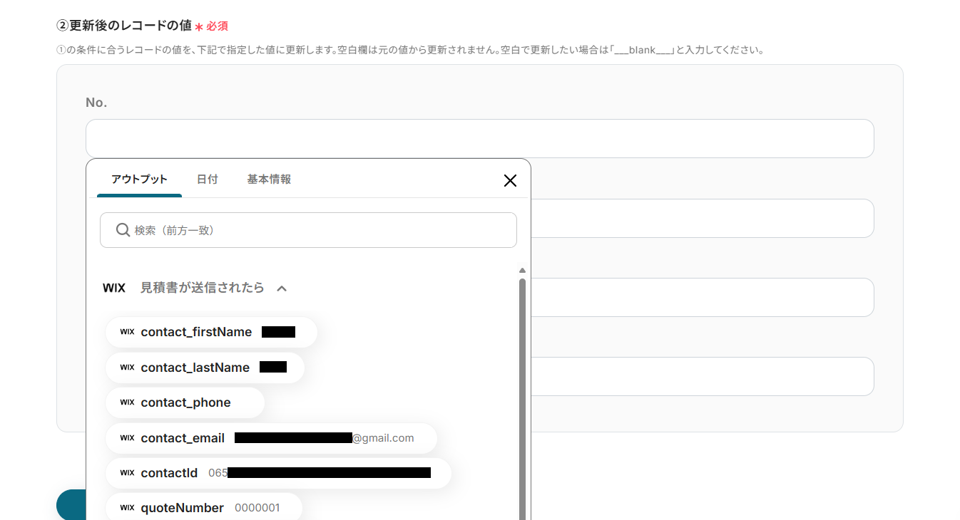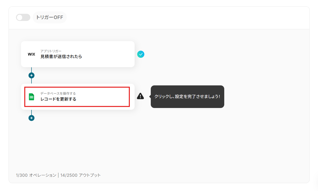 次に、取得した見積書のデータを用いてGoogle スプレッドシートのレコードを更新する設定を行います。