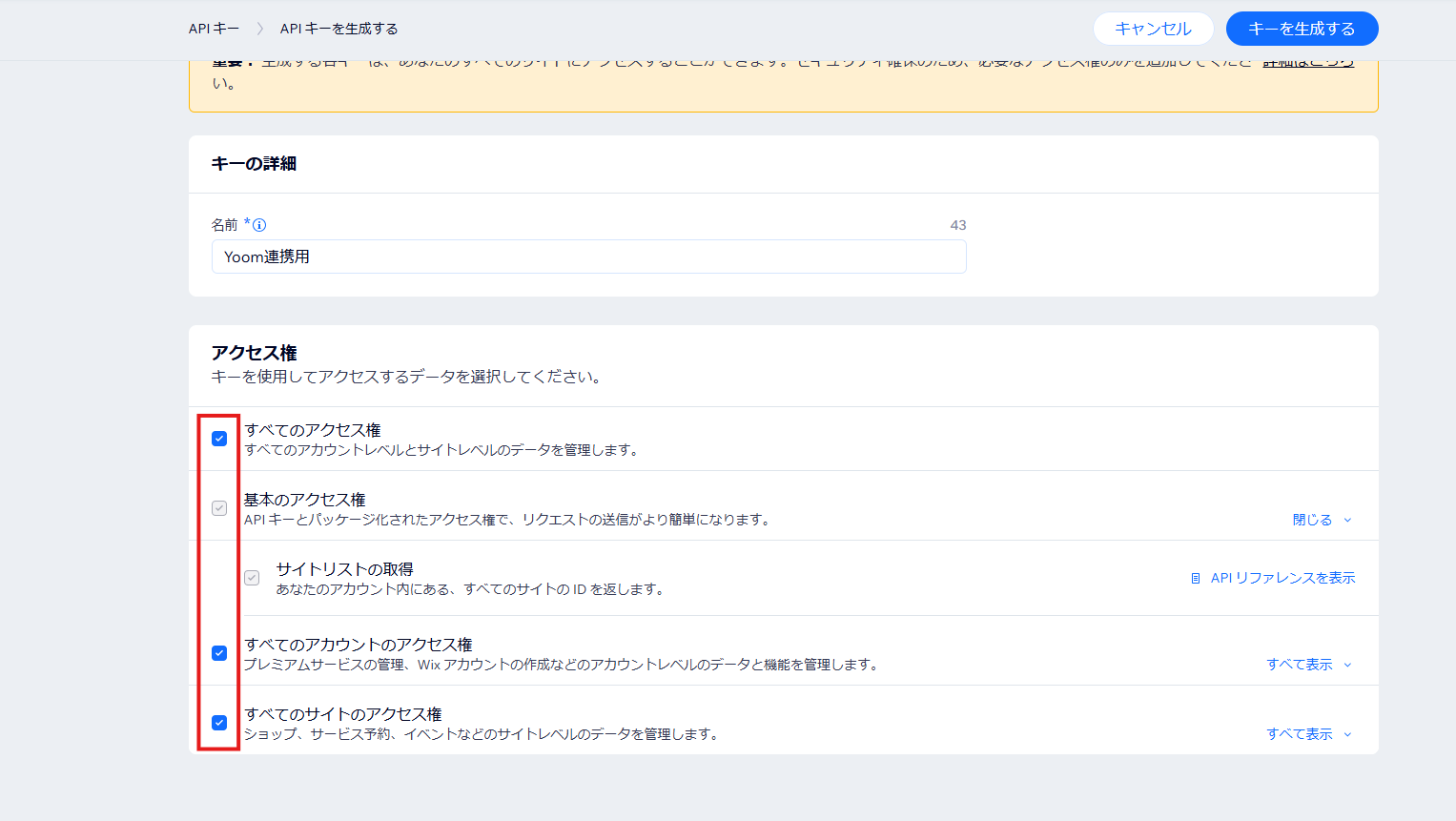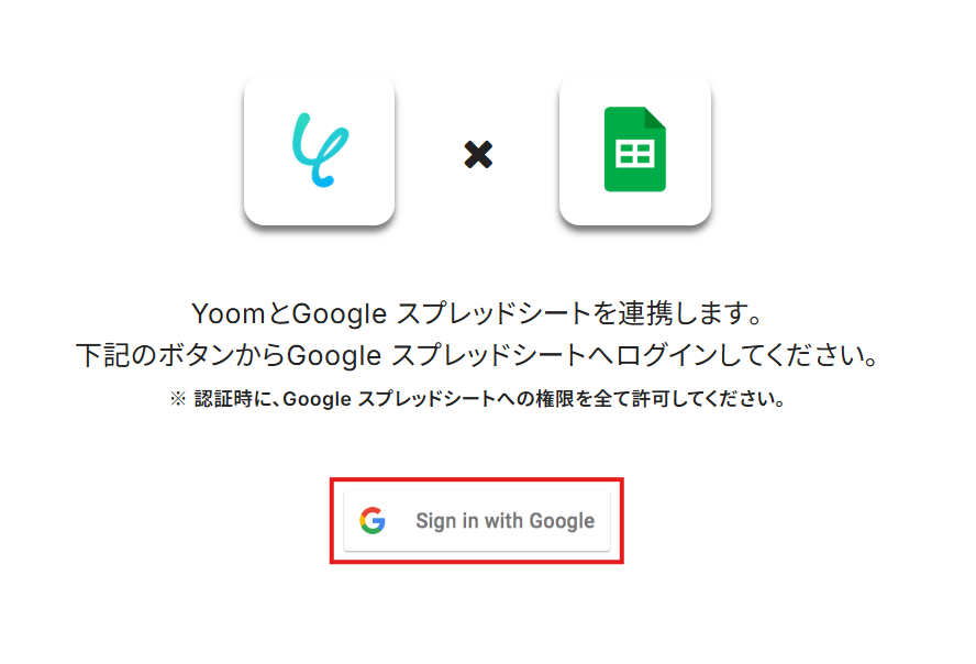 「Yoomがアクセスできる情報を選択してください」と表示されている場合には、「すべて選択」にチェックを入れてください。