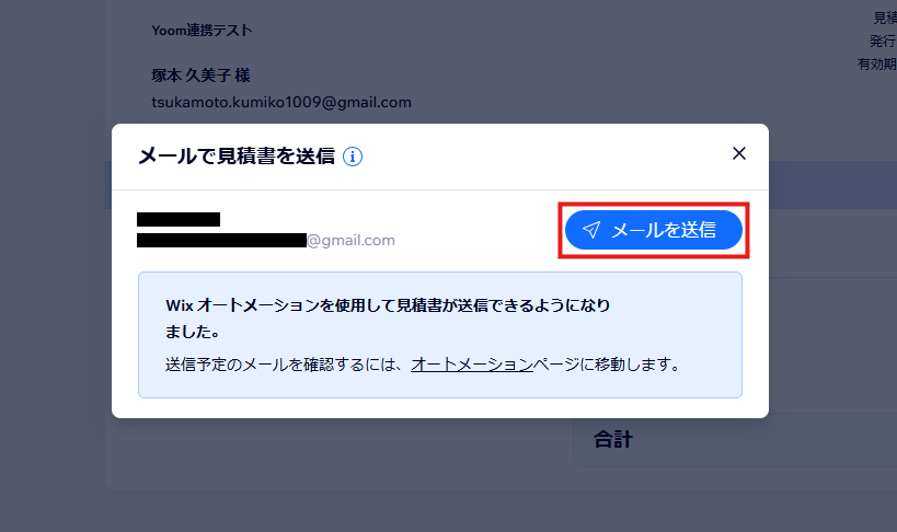 Wixヘルプセンターの「見積書を作成する」を参考に、テスト用の見積書を作成してください。