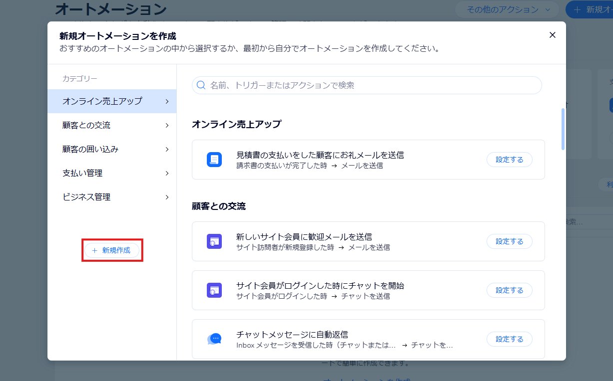 - 「+新規オートメーション」をクリック。