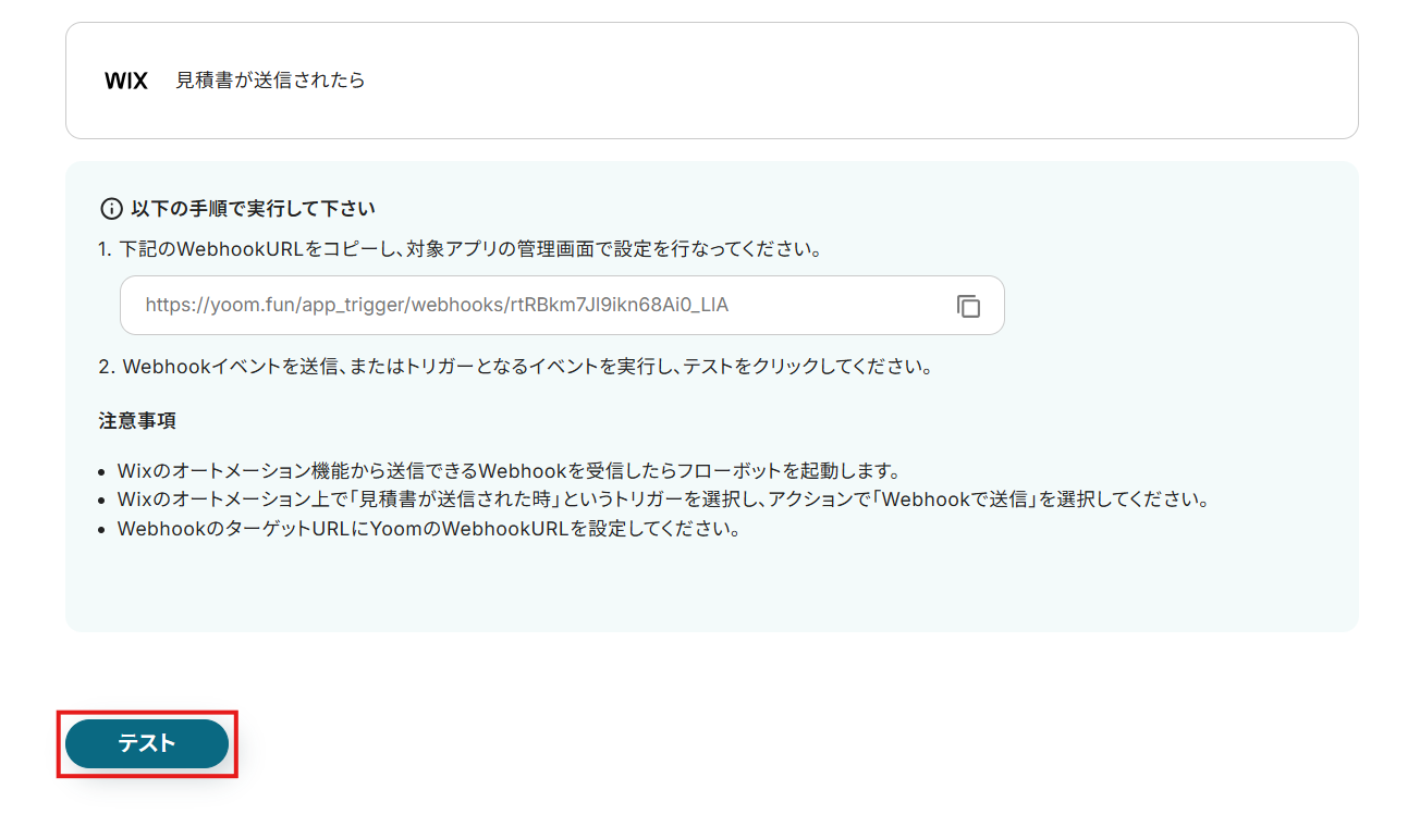 WixでのWebhook設定を行いましょう。