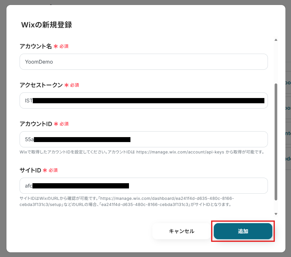 ・Wix、MailchimpのそれぞれとYoomを連携してください。