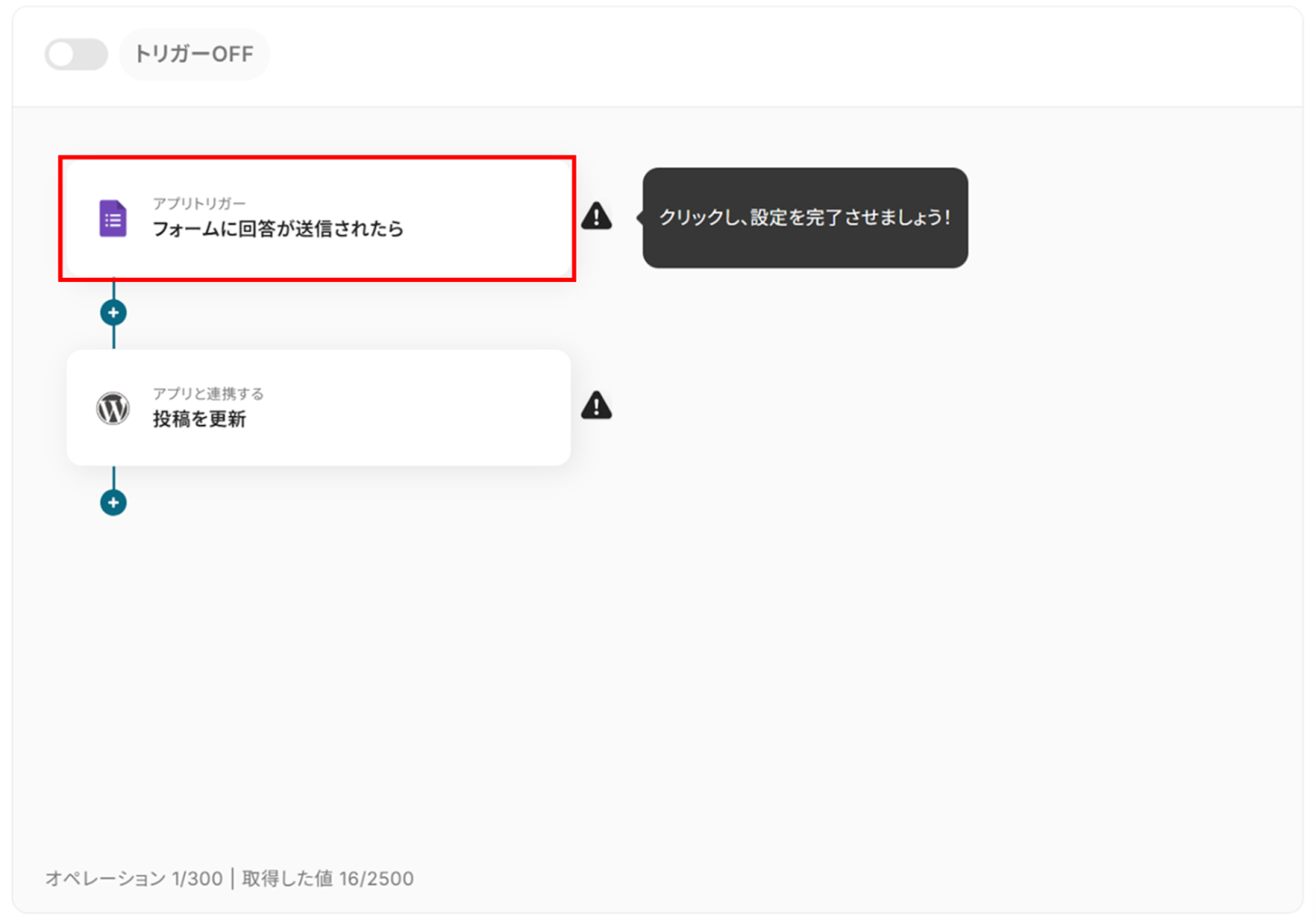 設定が完了すると以下のようなメニューが表示されるので、トリガーをONにします。