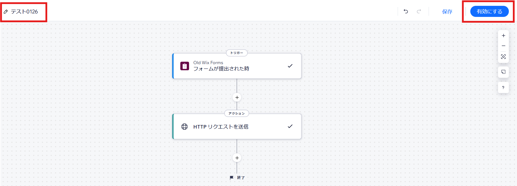 任意で名前の変更も可能です。右上にある「有効にする」をクリックします。