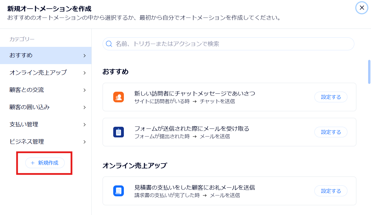 Wixのメニューにある「オートメーション」をクリックしましょう。
