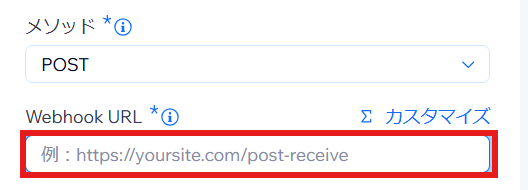 「 Webhook URL」にコピーしたYoomのWebhook URLを入力します。