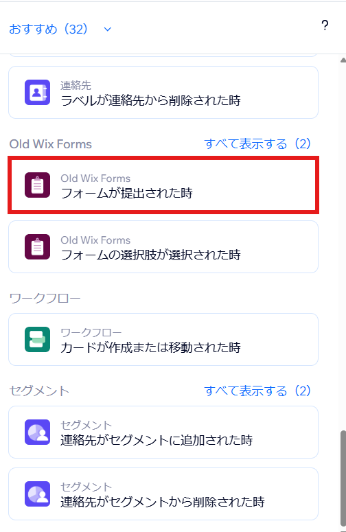 ステップ3:Wixでフォームが送信されたら 「フォームが送信されたら」を選択します。