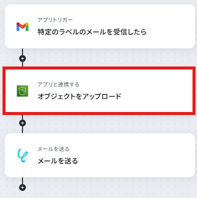 - Gmailのトリガー設定とAmazon S3、メールのアクション設定