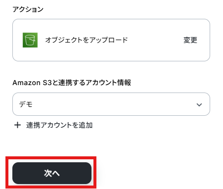 - Amazon S3へのアップロード設定では、保存先となるバケット名やオブジェクトキー(ファイル名)を自由に設定できます