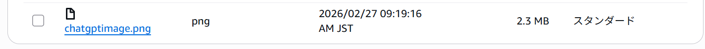 Amazon S3を確認するとファイルのアップロードが行われています。