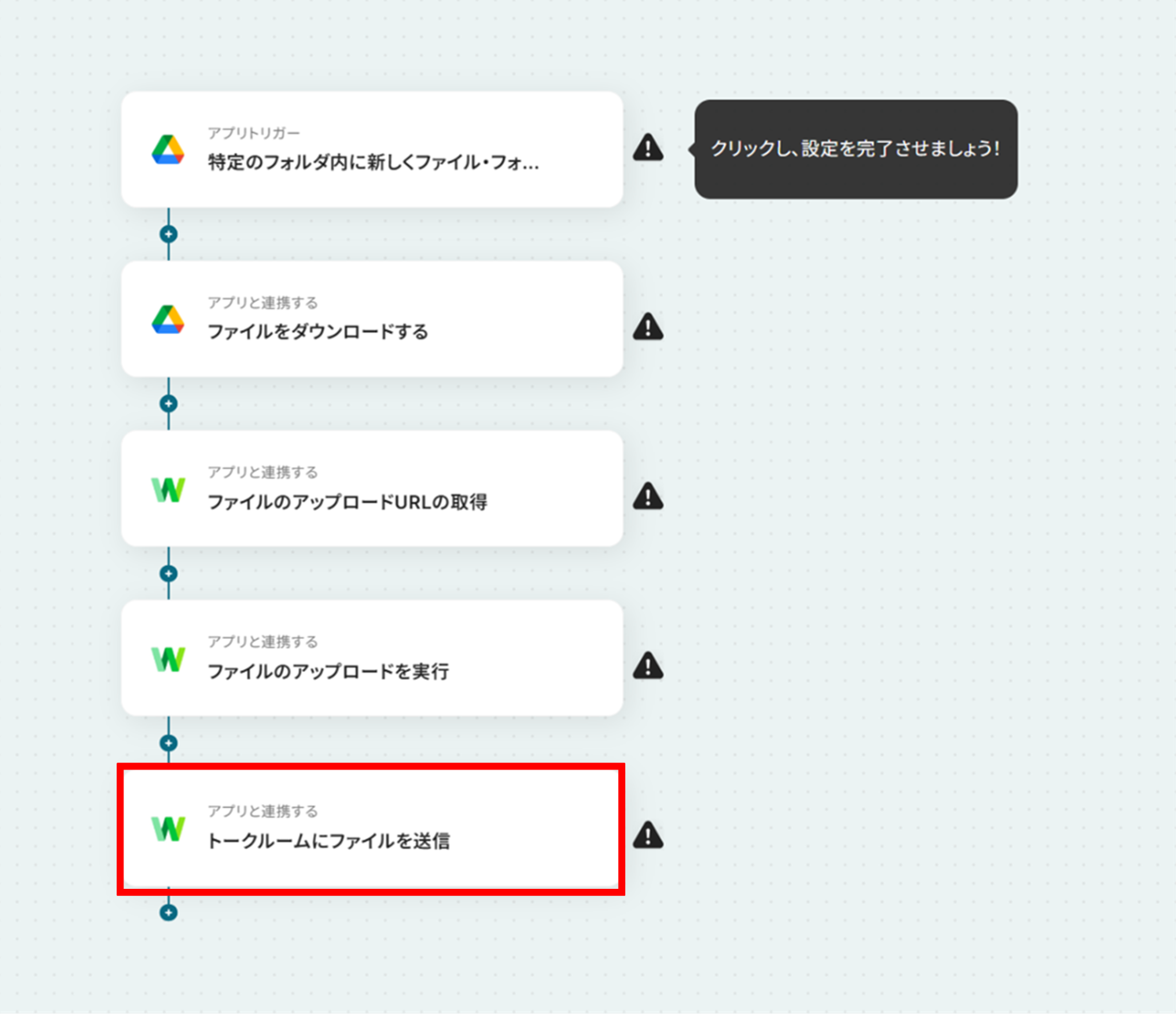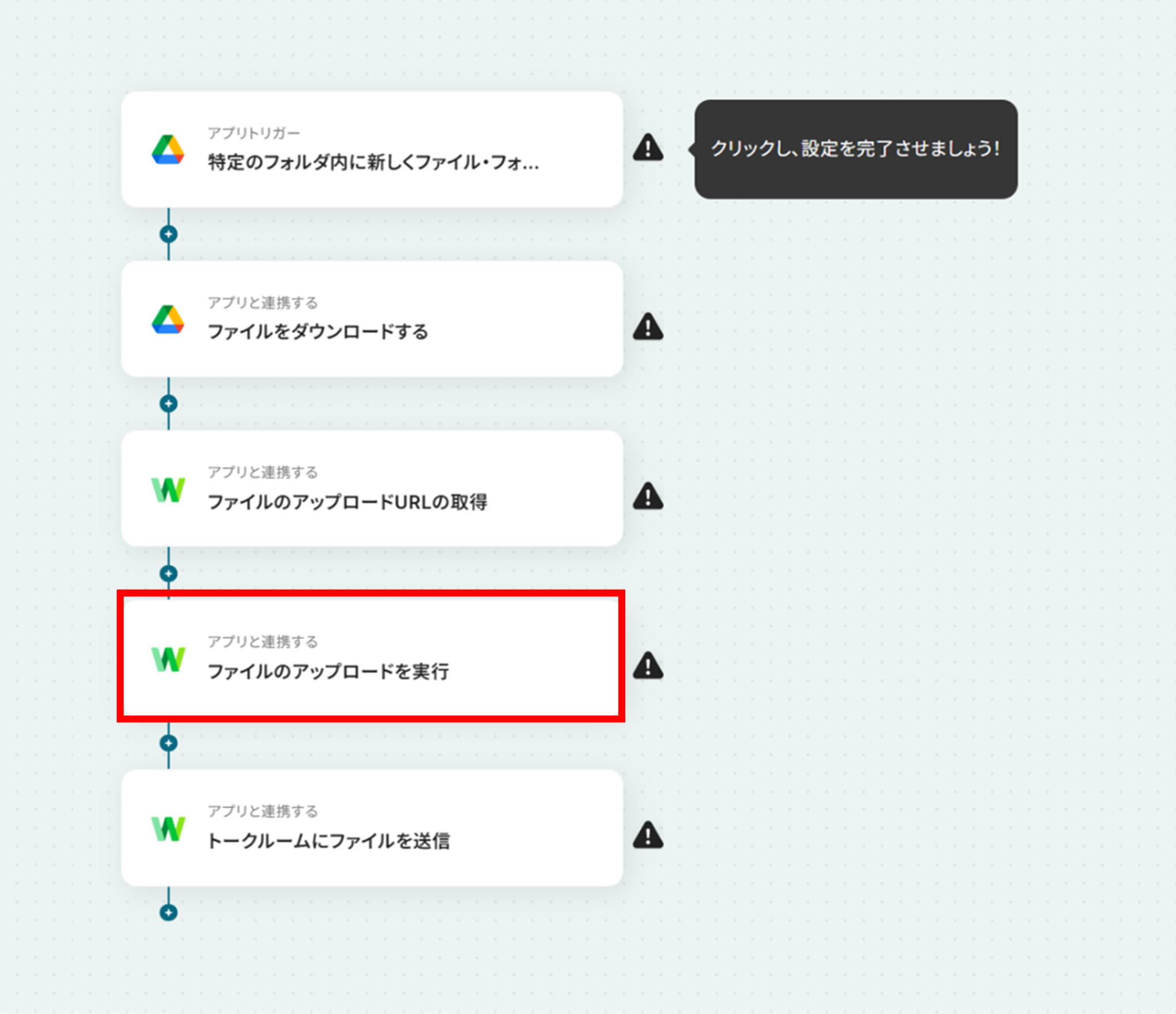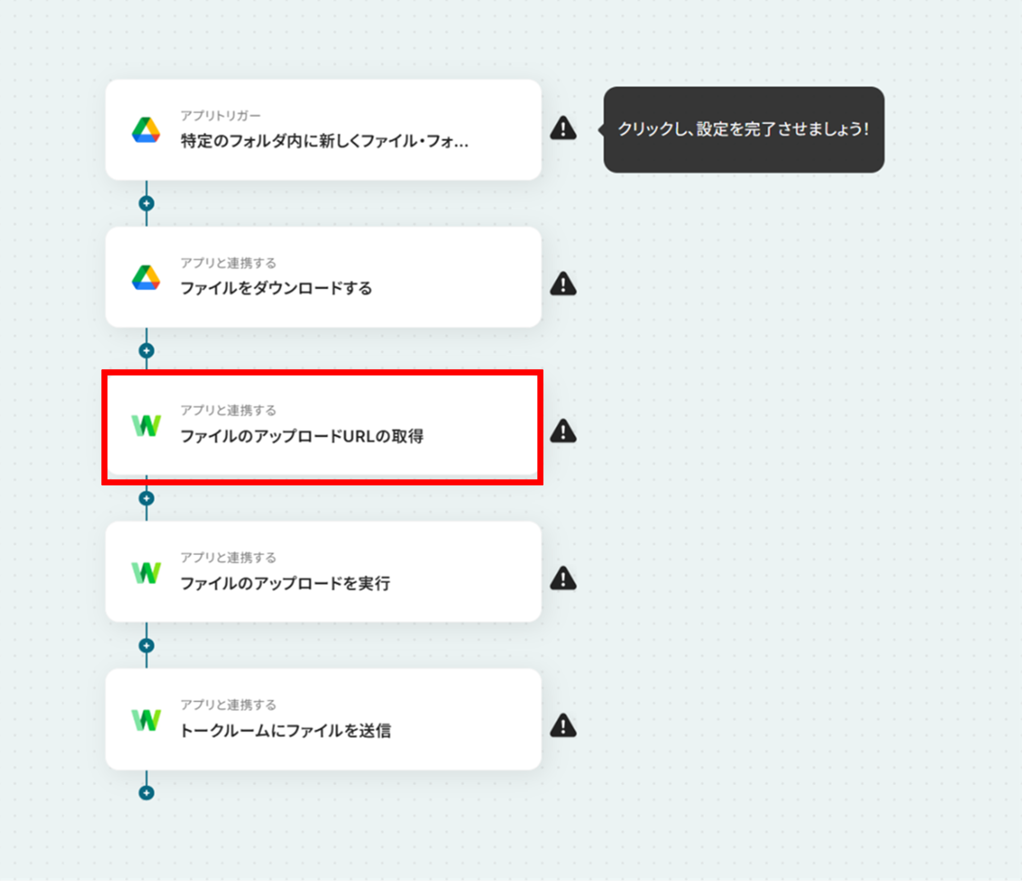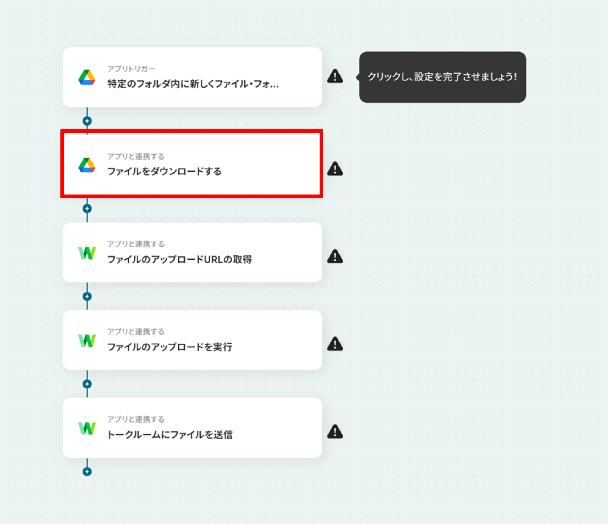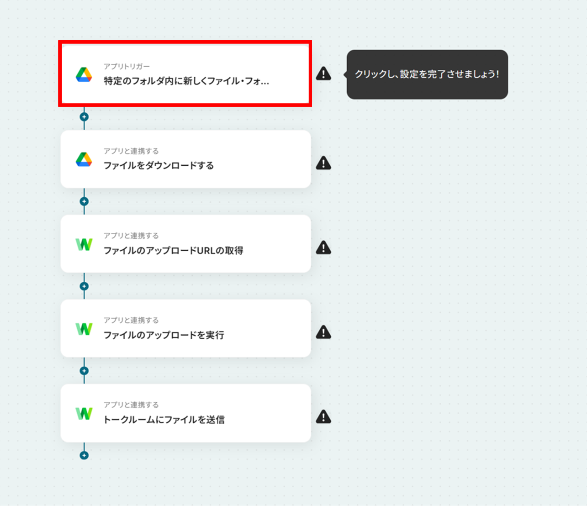 (2)それでは、Google Driveと連携してフォルダ内に新しくファイル・フォルダが作成された際の設定を行いましょう!