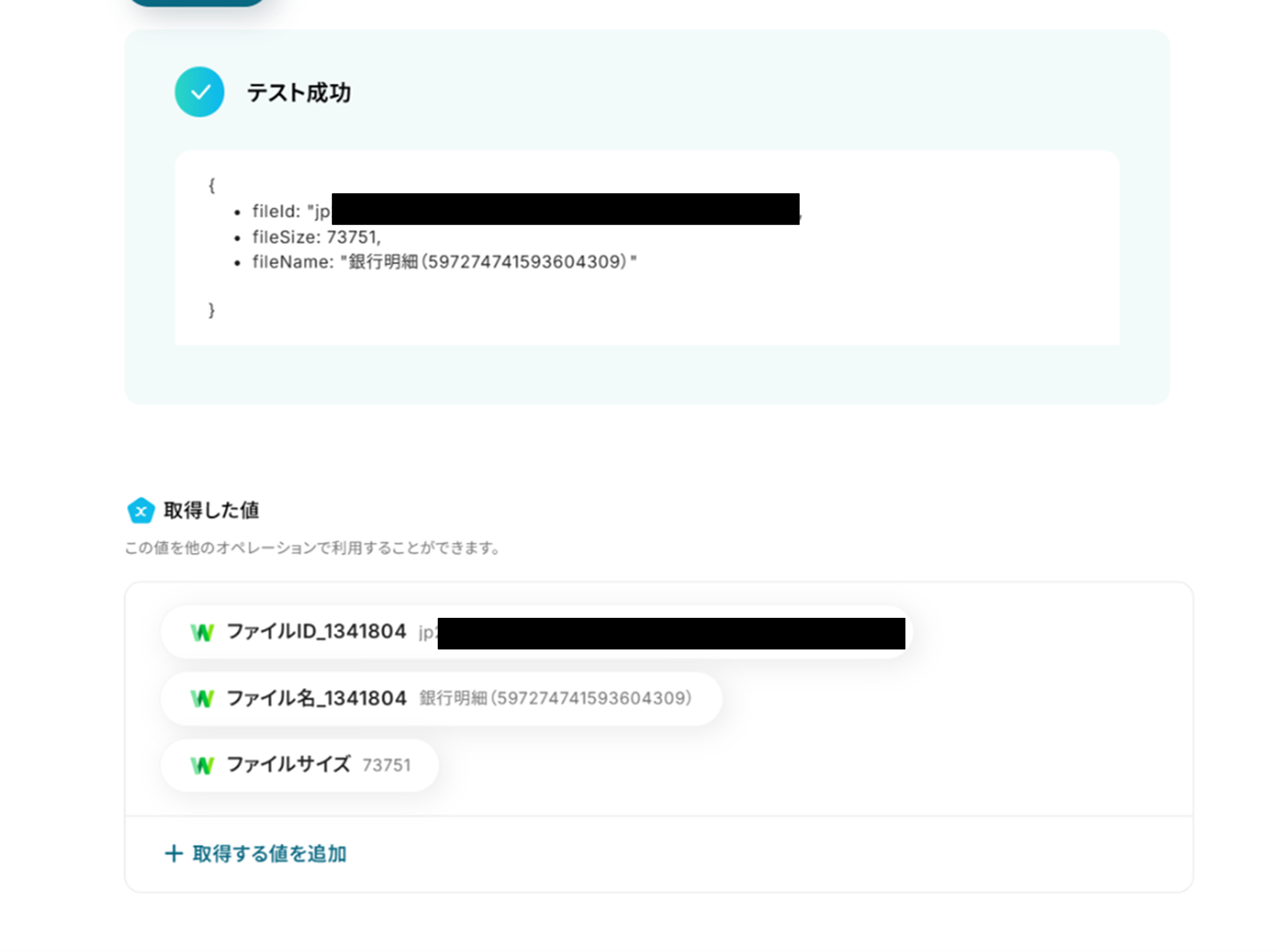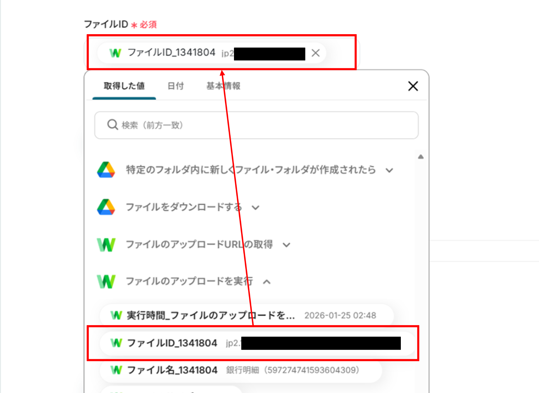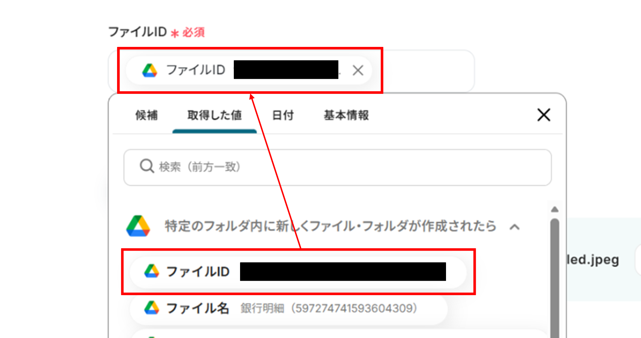 ファイルIDは取得した値から「ファイルID」を選択します。