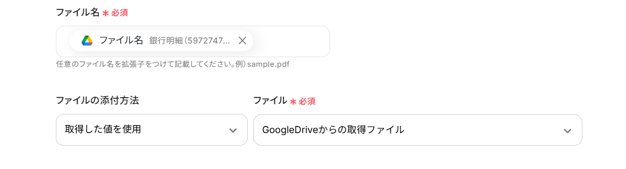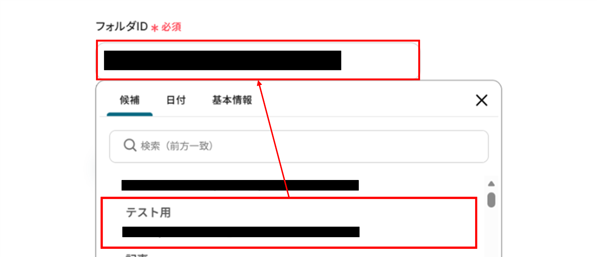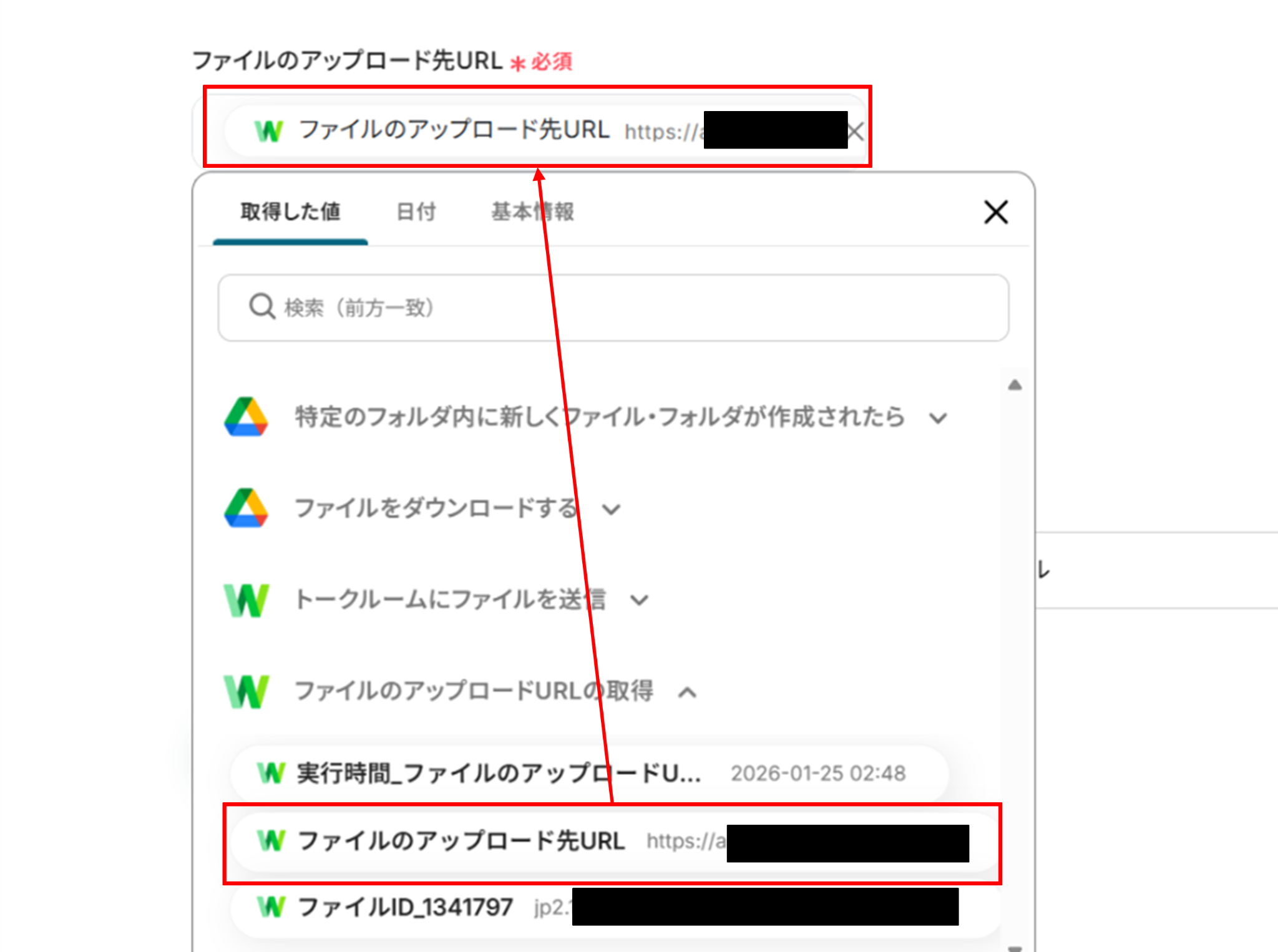 ファイルIDは取得した値から「ファイルID」を選択します。