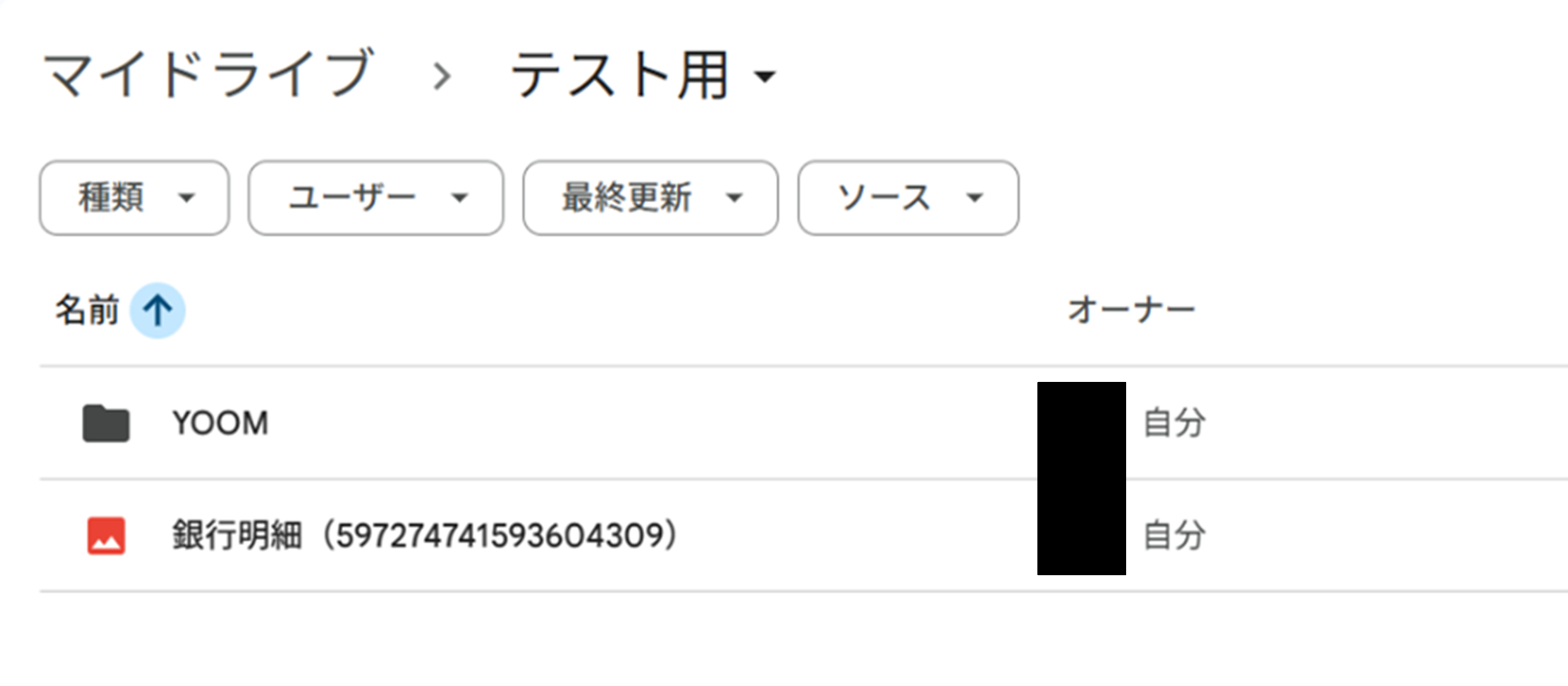 (1)Yoomで設定をする前に、今回ご紹介するテンプレートはフォルダ内に新しくファイル・フォルダが作成されることで起動するため、Google Driveにテスト用のファイルを作成します。