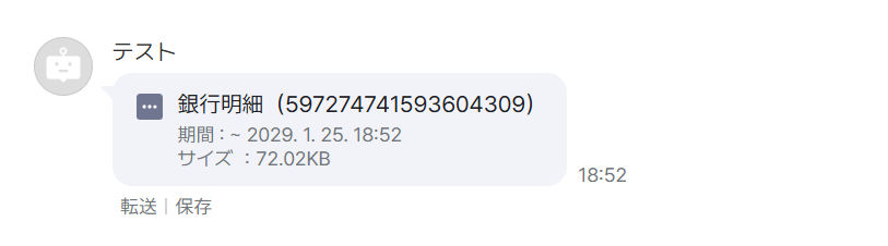 テストに成功すると、LINE WORKSにGoogle Driveのデータが送信されていました!