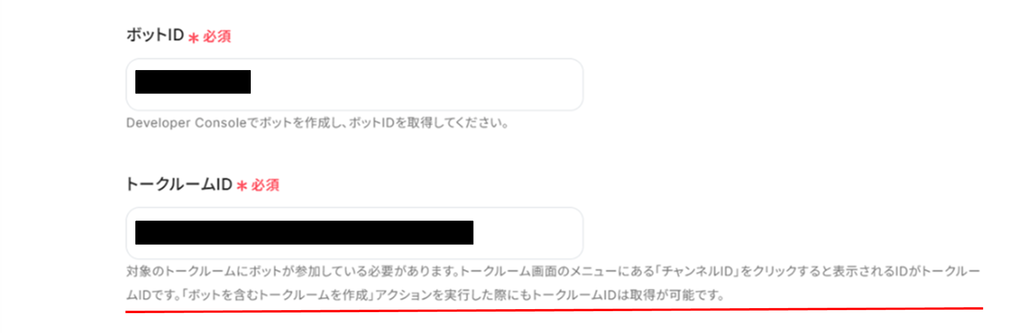 (3)ボットIDは候補から選択し、トークルームID赤線を確認の上、直接入力します。