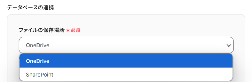ファイルの保存場所は「OneDrive」と「SharePoint」から選べます。今回は「OneDrive」を選びました! 会社でよく使用しているアプリの方を選択するのがおすすめです。