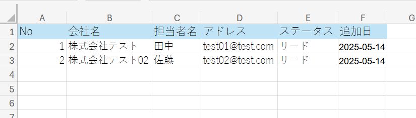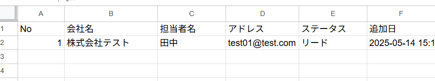対象のGoogle スプレッドシートに連絡先がアップロードされているか確認してみましょう。 設定した通りにMicrosoft Excelの連絡先がGoogle スプレッドシートに同期されていれば、OKです!