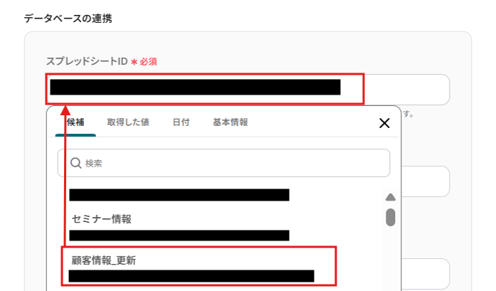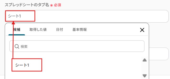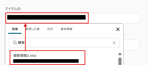 アイテムIDの候補を選択してください。指定したMicrosoft Excelのシートを選びましょう。